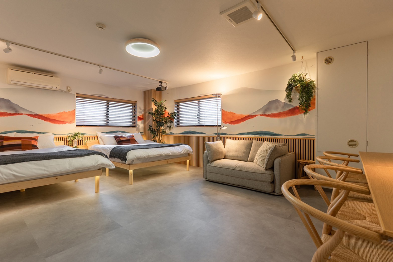 130㎡の広々とした空間には、ダブルベッド3台とダブルサイズのソファベッド3台を配し、最大12名までご宿泊可能。ご家族やご友人との滞在はもちろん、6名程度での贅沢なご利用もおすすめです。